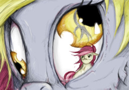 大多数小马都觉得小呆的眼睛有问题。从头部损伤、遗传病,再到眼部肌肉损伤,说法五花八门。甚至会有些恶劣的家伙说她就是弱智。那些善良一点的小马则会说这只是一种她从不会玩厌的派对玩笑。